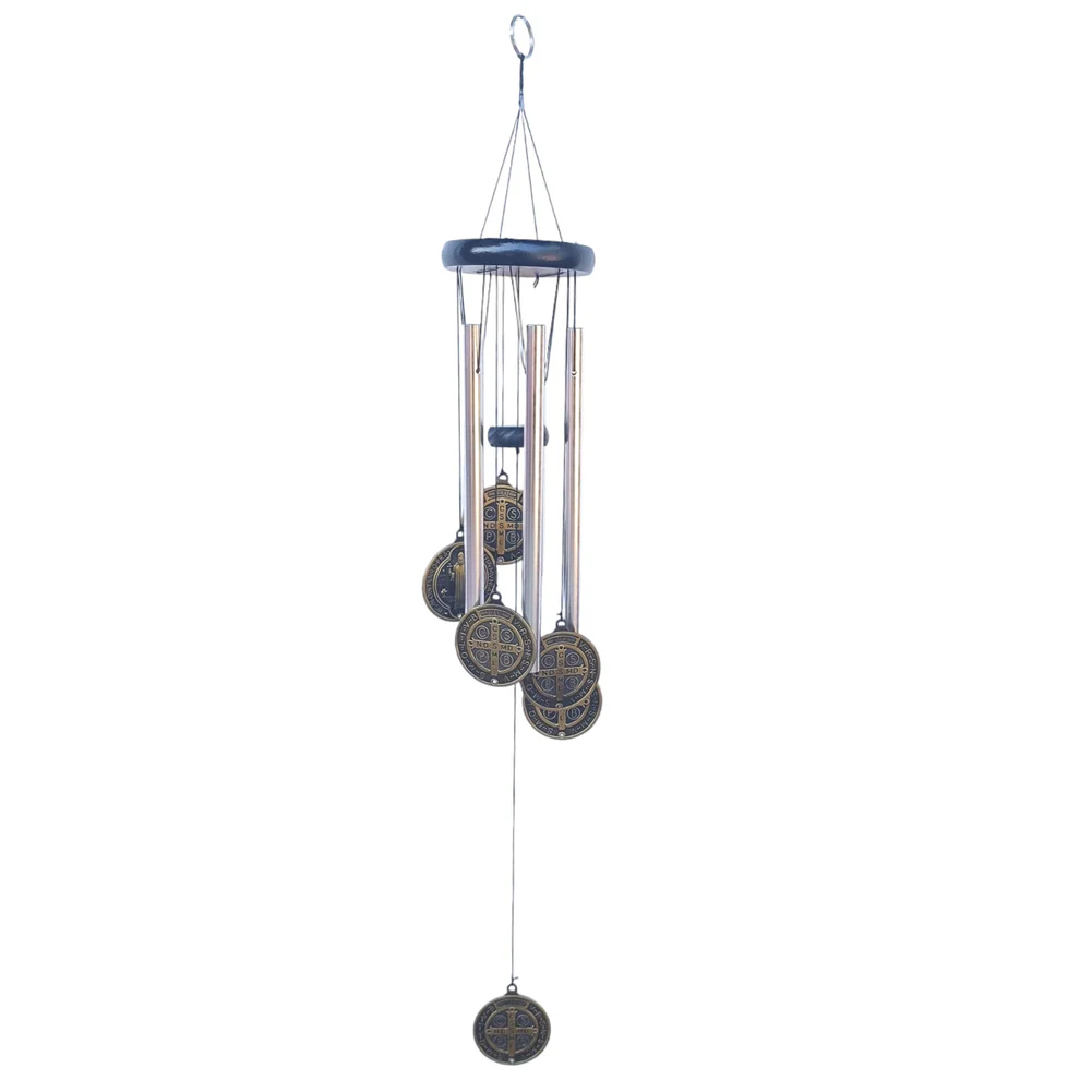 Campana De Viento San Benito (70 cm). Amuleto de protección espiritual y fe. Decoración mística con sonido relajante y armonioso para el hogar. Diseño tradicional y significativo.