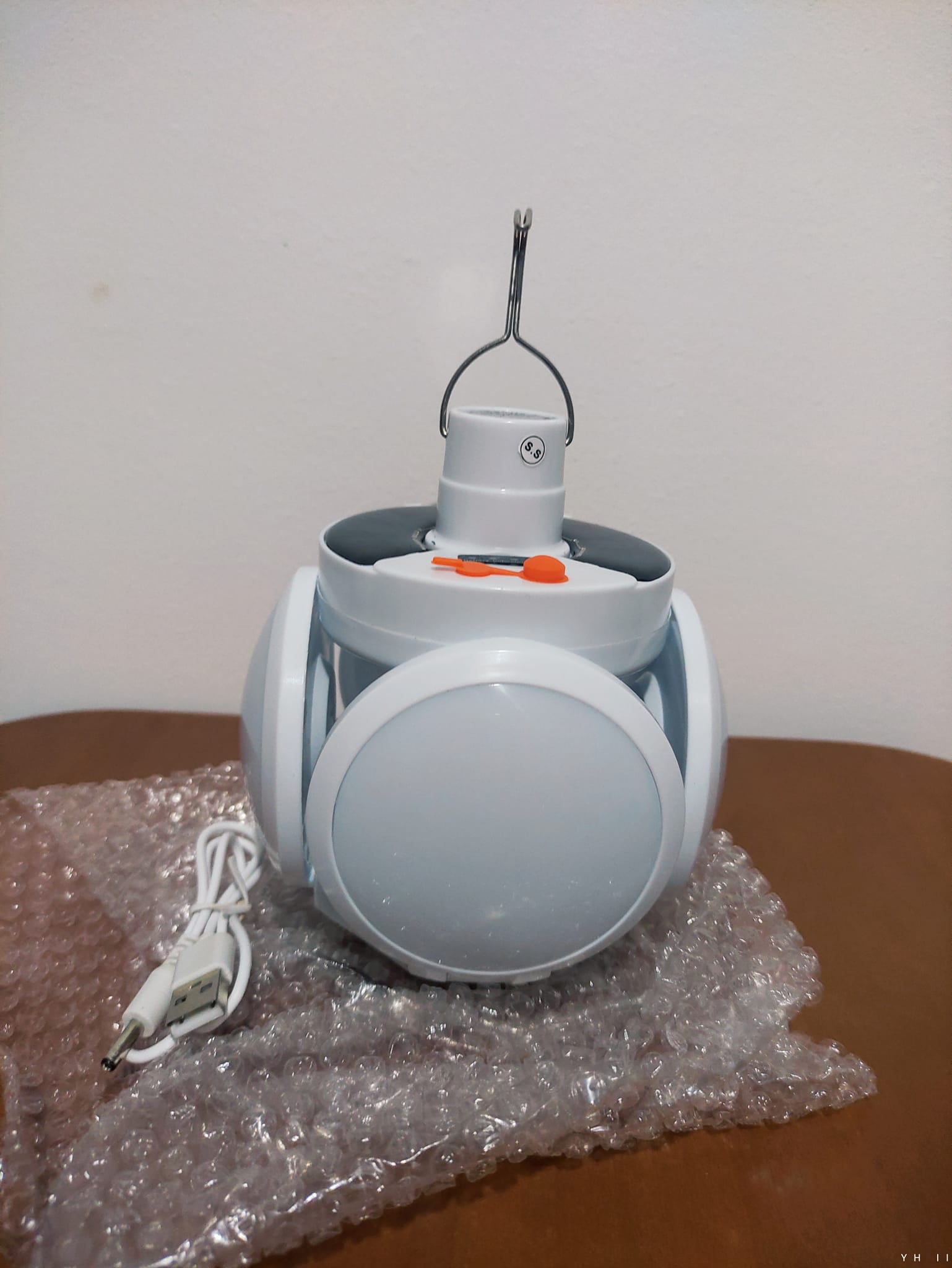 Lámpara solar plegable portátil!. Nueva a estrenar. Es recargable tanto con luz solar y corriente eléctrica, por el cuál podrás ahorrar energía!. Es completamente portátil, por el cuál podrás llevarla a donde quieras!. Lleva un gancho incorporado, fabricado en acero inoxidable, en el cuál podrás engancharlo en casi cualquier sitio!. Tiene 5 hojas de luces, en el cuál se divide en 6 mini bombillas LED en cada hoja, un total de 45 mini bombillas LED, en el cuál puedes plegado a tu gusto!. Tiene gran autonomía de capacidad y trae varios modos de luces, entre ellos es parpadeante, en modo de SOS!. Su medida es de 14 x 11,5 cm!. Ideal para el hogar, casa de campo, camping, eventos, trabajos donde haya algo de oscuridad, etc… Ideal para ti o para regalar!.
