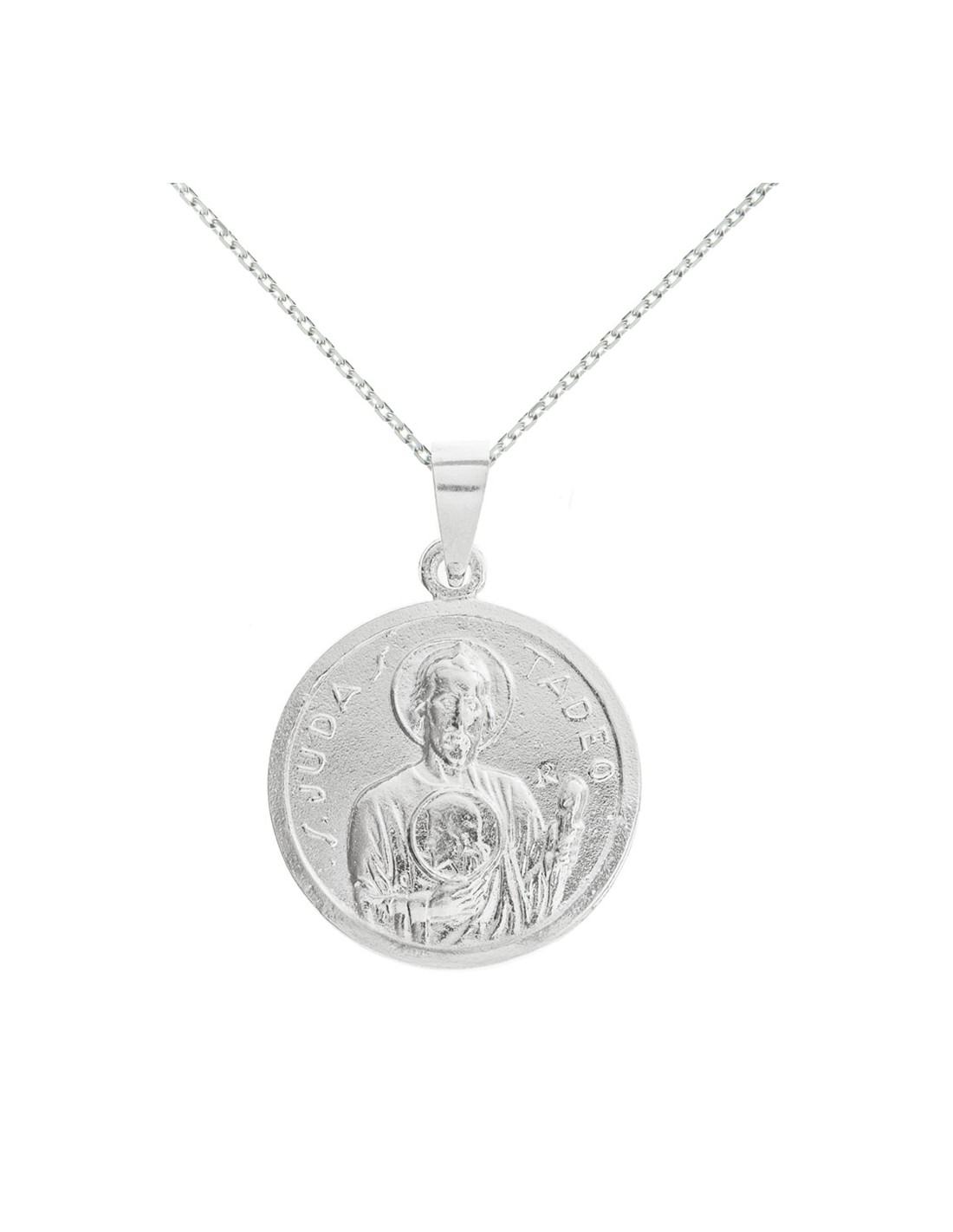 La medalla de San Judas Tadeo de plata de ley con cadena de 45 cm es una joya religiosa que representa al santo patrón de las causas difíciles y desesperadas