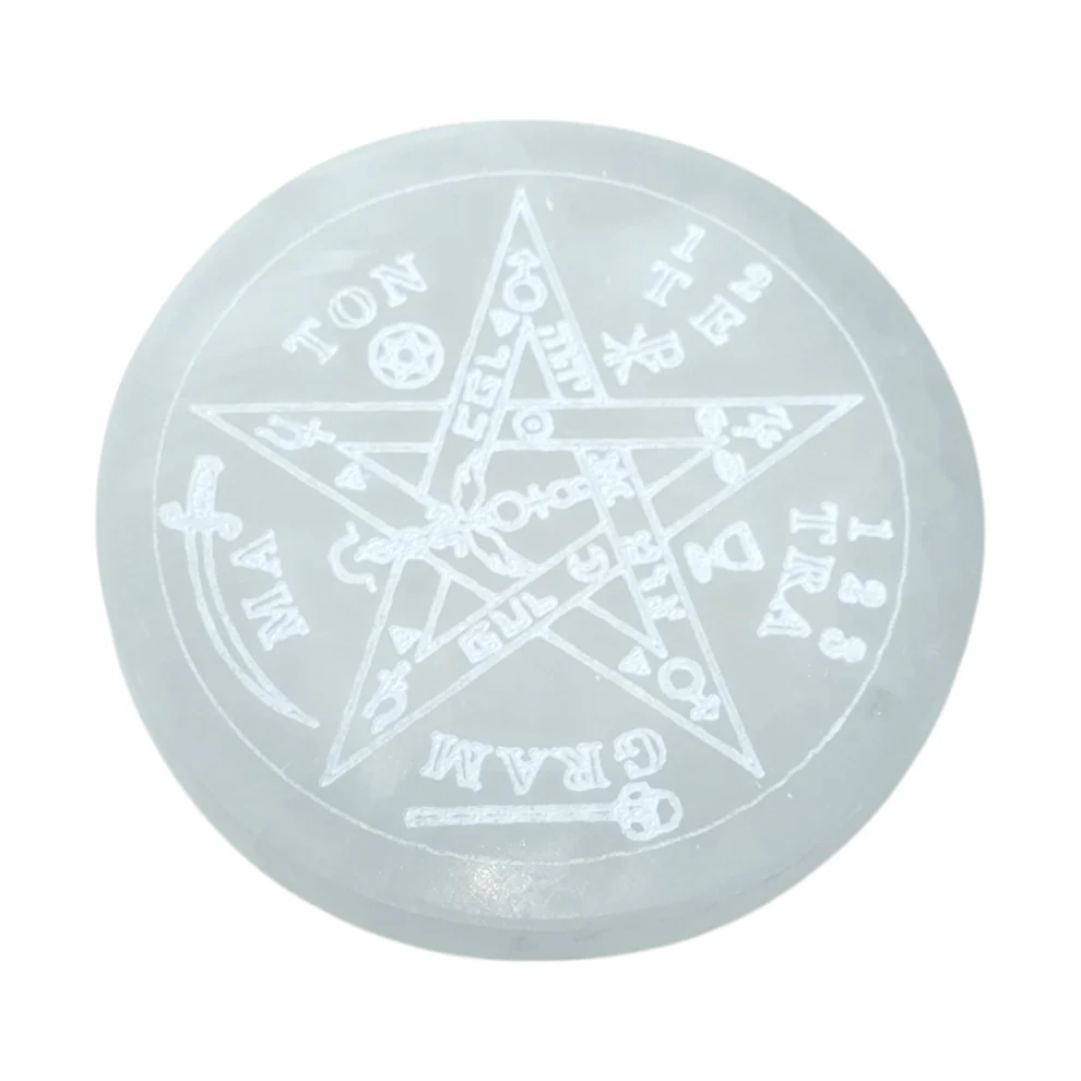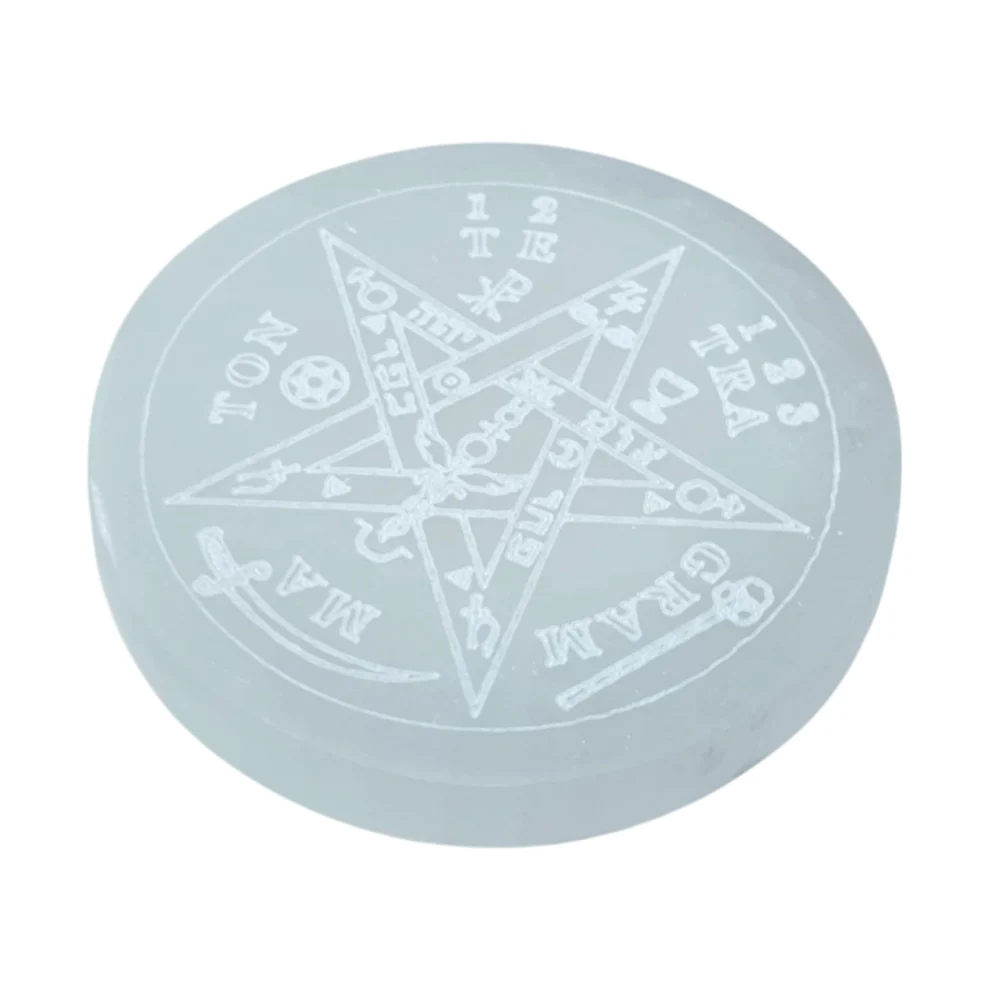 Propiedades del Plato de selenita grabado Tetragramatón protección limpieza energética